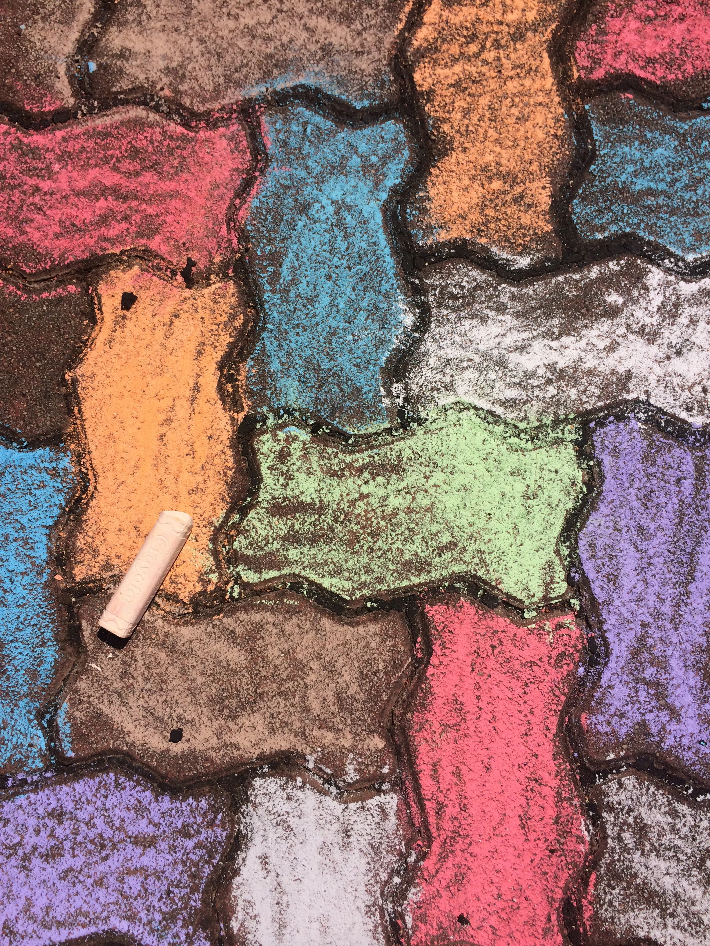 Color a pattern in the ground! If there are bricks, try coloring each brick in a different color or pattern!